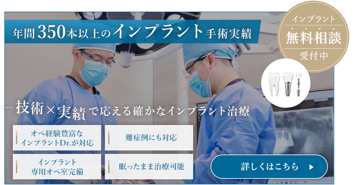 当院では、年間症例350本以上の実績を持つインプラント専門ドクターが治療を担当しています。